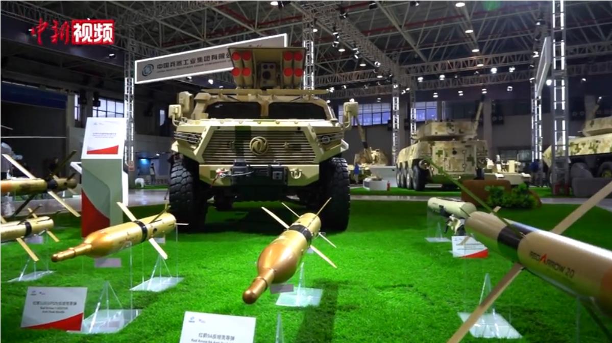 【解說】據(jù)介紹,中國兵器工業(yè)集團(tuán)帶來的展品共計(jì)175款,其中52款為首次參展。在展館最顯眼處是一輛全新發(fā)布的升級款的VT4系列主戰(zhàn)坦克,它在態(tài)勢感知能力,有/無人協(xié)同作戰(zhàn)能力上有全面提升。