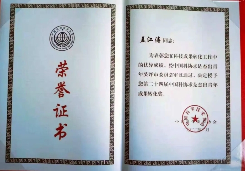 第二十四屆中國科協(xié)求是杰出青年成果轉(zhuǎn)化獎
