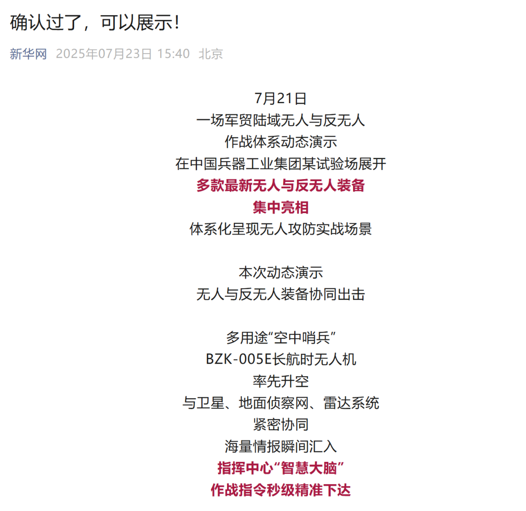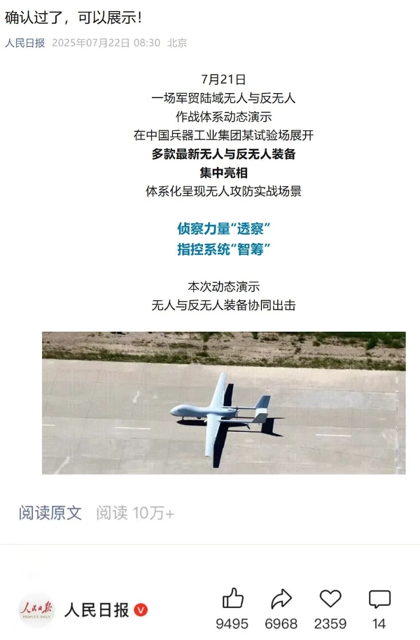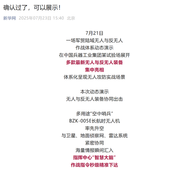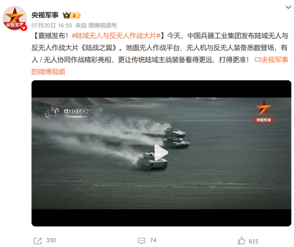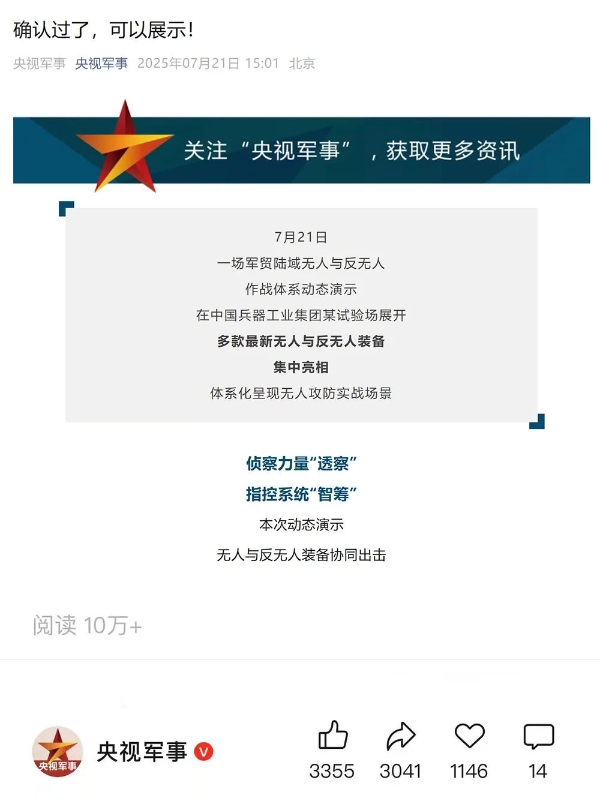 央視新聞客戶(hù)端:兵器工業(yè)集團(tuán)陸域無(wú)人與反無(wú)人作戰(zhàn)體系震撼來(lái)襲!搶先看!2025-07-24