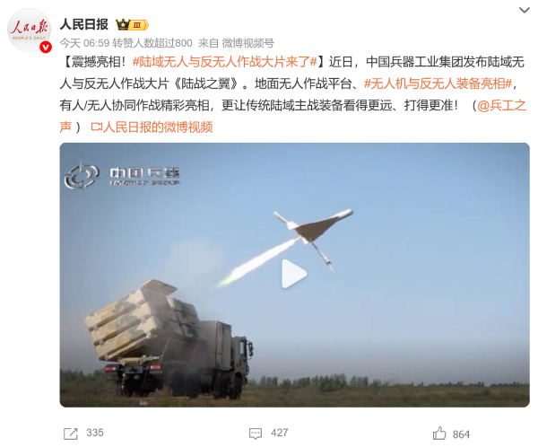 人民日?qǐng)?bào)微博、央視軍事微博、央視新聞客戶(hù)端、中國(guó)新聞網(wǎng)、中新社國(guó)是直通車(chē)抖音、環(huán)球網(wǎng)微博、環(huán)球時(shí)報(bào)(X平臺(tái)、英文版客戶(hù)端)、中國(guó)日?qǐng)?bào)網(wǎng)、央視軍事報(bào)道微博、中國(guó)軍號(hào)微博、中央廣播電視總臺(tái)“空天逐夢(mèng)”微信視頻號(hào)、共青團(tuán)中央B站、國(guó)資小新微博等中央主流媒體、國(guó)家部委的新媒體播發(fā)集團(tuán)公司陸域無(wú)人與反無(wú)人作戰(zhàn)大片等視頻作品。